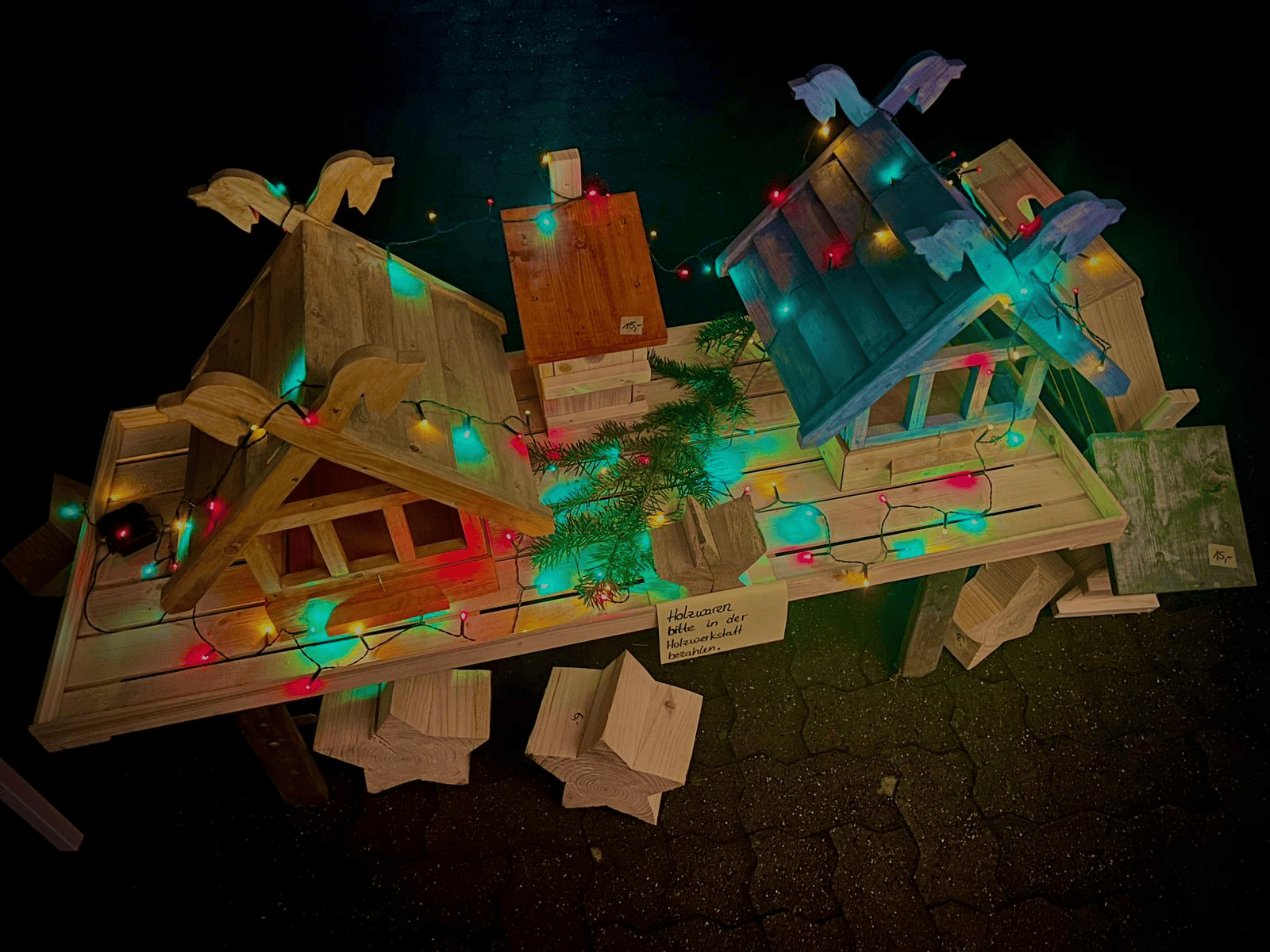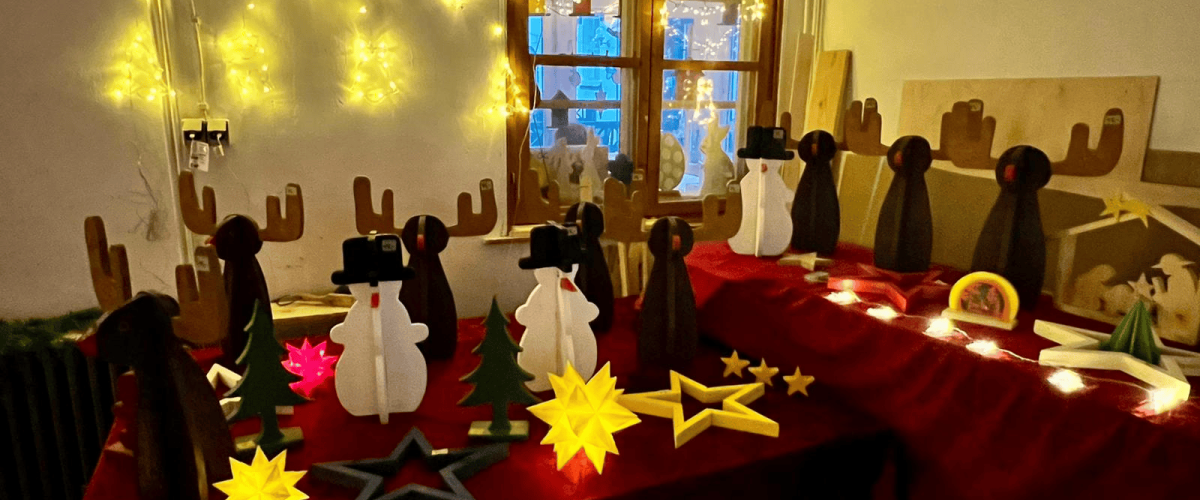 Bei unserem Adventsbasar Anfang Dezember, haben wir gemeinsam handgefertigte Kunsthandwerke angeboten und verkauft. Von selbst gebrannten Keramik-Fantasiewesen oder selbst gebastelten Kerzen über Holzsterne sowie Vogelhäuser bis hin zu leuchtenden Sternen war für jeden etwas dabei. Für den Anlass haben wir unsere Holzwerkstatt festlich dekoriert und draußen für den Austausch ein paar Feuerkörbe aufgebaut. Wer wollte, konnte bei gemütlicher Stimmung noch einen Punsch trinken.